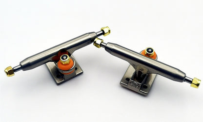 BRT 3.0 clone looks very similar to the original truck in appearance, with some minor adjustments made Bushing and pivot are produced by ourselves, and there may be some differences in hardness compared to the original version The length of the kingpin is shorter compared to the original version to ensure that it is lower than the hanger, making it easier to slide on rail Players can adjust the tightness of the truck by replacing the additional busings and locknuts we provide